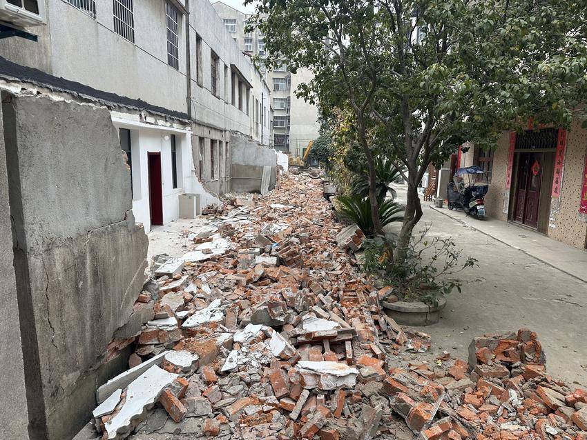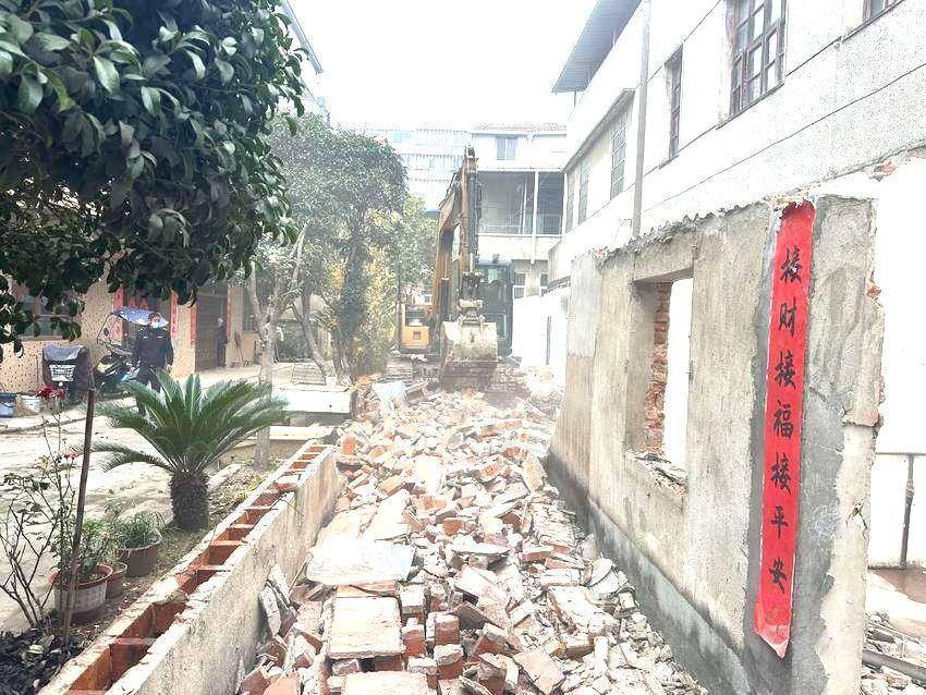 行动当天,现场没有扯皮和计较,只有默契的协作。针对厚重砖混墙体,一台小型挖掘机在专业人员操作下高效作业;更多的居民和干部则自发排成了“人力传送带”,清砖块、运木料。
