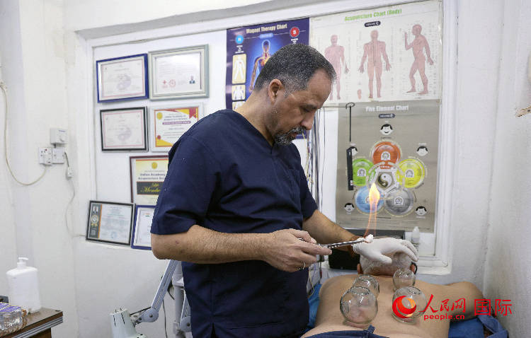 人民网迪拜12月20日电 (记者管克江)巴格达一个小巷里,中医大夫拉伊克·塔里克忙得不亦乐乎。针灸、拔罐、艾灸……拉伊克操作娴熟。诊所面积不大,墙上挂着针灸穴位图,木架上整齐摆放着各种针灸针和理疗用具。