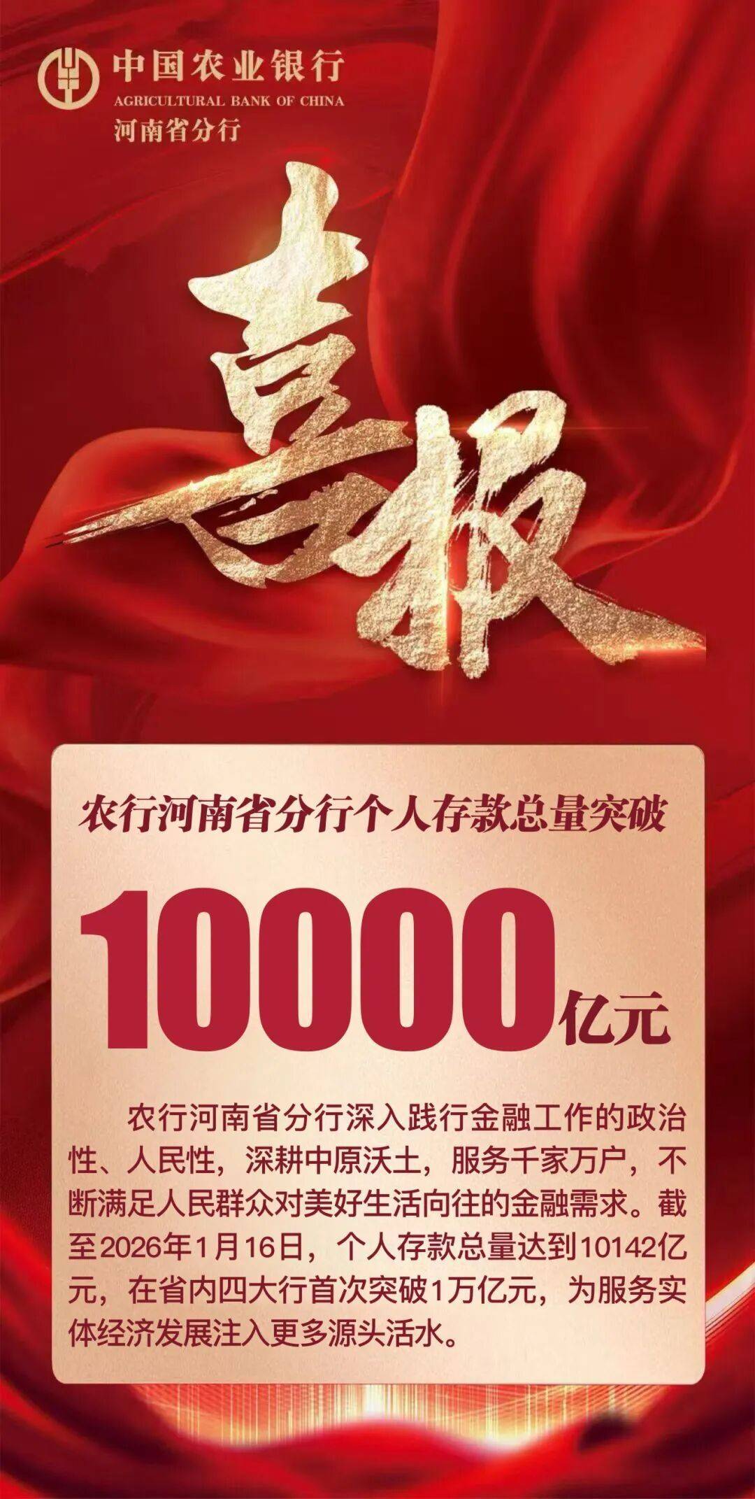 策上策配资 农行河南省分行个人存款总量突破1万亿元